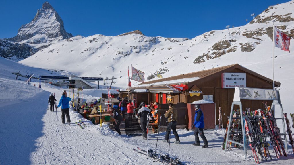 As the name suggests, a great self-service restaurant location with sunshine from morning till night including an amazing view of the Matterhorn. It’s a popular place for guests to enjoy local specialities with a glass of wine.